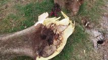 Homem quase tem perna amputada ao ser atingido por tronco de árvore