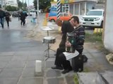 Wandering musicians from Cuba, played on the sidewalk in Russia. They do not interfere with any passing cars and buses, more than anything.