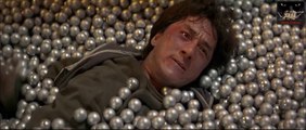Jackie Chan fights with Cougar's thugs in an auto repair shop in the movie THUNDERBOLT (1995)