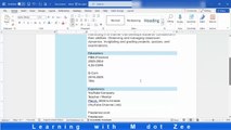 How to Create CV | Microsoft Word Tutorial | LECTURE # 8 | Learning with M dot Zee