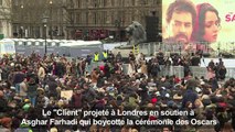 <br /> Plusieurs milliers de personnes ont assisté dimanche 26 février à une projection gratuite du film "Le Client" de l'Iranien Asghar Farhadi à Trafalgar Square à Londres, en soutien au cinéaste qui boycotte la cérémonie des Oscars pour dénoncer la politique de Donald Trump. Durée: 01:08<br />