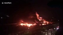 Dramatic footage has emerged from China of a flea market engulfed in huge flames.<br /><br />The video, filmed in Beijing on Monday, shows a thick plume of black smoke rising into the air from the market. <br /><br />The blaze reportedly caused severe traffic disruption. <br /><br />No casualties were reported.