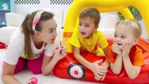 Niki and Chris Surprises Box Challenge in inflatable castle