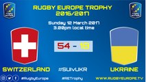 Third match in Rugby Europe Trophy 2016/2017 for Switzerland and Ukraine. Match takes place in Geneva at 3.00 pm local time (GMT+2). Details of the group on : http://www.rugbyeurope.eu/competitions/rugby-europe-international-championships <br /> Follow us on Twitter, Facebook and Instagram : #RugbyEurope <br />#RETrophy, #SUIvUKR