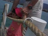 Une raie manta affamée grimpe sur le ponton pour manger