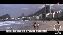 Un singe est entrain de manger devant un jeune. Celui-ci, lui réclame un petit peu de nourriture en vain ! Le pauvre jeune a l'air triste !