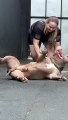 Girl playing with a pitbull dog xx