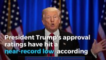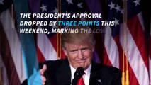 In the ongoing battle between Arnold Schwarzenegger and President Trump, Schwarzenegger blasted the leader for his low approval ratings. "Donald, the ratings are in, and you got swamped. Wow. Now you’re in the 30s?” the former Calfornia governor said in a Twitter video. Trump's approval rating plummeted to 37 percent over the weekend, according to a Gallup poll. Trump ignited a Twitter war after tweeting about Schwarzenegger leaving the Apprentice. The score marked the lowest approval rating for Trump since his inauguration, and is also lower than Barack Obama ever experienced throughout his presidency.
