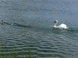 un cygne qui veut becter un canard...
