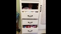 Coincé derrière les tiroirs d'un meuble ce gamin ne sait pas en sortir !