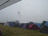 Camping emporté par une tornade : tentes, sac de couchages, tables..