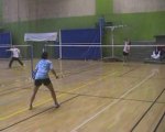 Championnat de France de Badminton, Mont-de-Marsan 2007. <br />Justine & Manon Leleu, 2ème set du 1/8 de Finale Double Dames Minimes. <br />Interview de Justine & Manon pour leur 1ère participation au France.