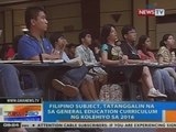 NTG: Filipino subject, tatanggalin na sa general education curriculum ng kolehiyo sa 2016