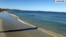 Dog and dolphin play together at Western Australia beach _2017