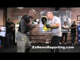 For more log onto http://www.fighthubtv.com<br />Like us:http://on.fb.me/xWRC1f<br />follow us:http://bit.ly/wACkIv<br />videos uploaded daily! Subscribe: http://goo.gl/vnzIb<br /><br />Timothy Bradley prepares for Juan Manuel Marquez as he and Joel Diaz workout hitting the mitts and bags.