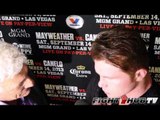 For more log onto http://www.fighthubtv.com<br />Like us:http://on.fb.me/xWRC1f<br />follow us:http://bit.ly/wACkIv<br />videos uploaded daily! Subscribe: http://goo.gl/vnzIb<br /><br />Saul Canelo Alvarez says that he needs to keep his cool and fight his fight against Floyd Mayweather Jr. on September 14th.