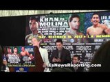 For more log onto http://www.fighthubtv.com<br />Like us:http://on.fb.me/xWRC1f<br />follow us:http://bit.ly/wACkIv<br />videos uploaded daily! Subscribe: http://goo.gl/vnzIb<br /><br />The final press conference between Amir Khan vs. Carlos Molina which happens on Saturday at the LA Sports Arena.