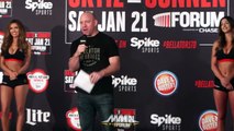 For more log onto http://www.fighthubtv.com<br />Like us:http://on.fb.me/xWRC1f<br />follow us:http://bit.ly/wACkIv<br />videos uploaded daily! Subscribe: http://goo.gl/vnzIb<br /><br />in association with http://www.lowkick.com<br /><br />The stare down between Tito Ortiz and Forrest Griffin and Cung Le and Patrick Cote for UFC 148 undercard.