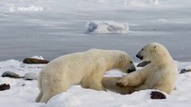 Polar bears sparring in slow motion