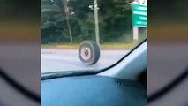 LOOSE TIRE ROLLS DOWN NEW JERSEY HIGHWAY UNTIL CRASHING INTO CAR