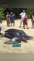 Leatherback sea turtle (Dermochelys coriacea) [Vulnerable] <br /> <br />The leatherback sea turtle, sometimes called the lute turtle or leathery turtle or simply the luth, is the largest of all living turtles and is the fourth-heaviest modern reptile behind three crocodilians. Wikipedia <br /> <br />Scientific name: Dermochelys coriacea <br /> <br />Conservation status: Vulnerable (Population decreasing) Encyclopedia of Life <br /> <br />Mass: 550 – 1,500 lbs (Adult) <br /> <br />Length: 6 – 7.2 ft. (Adult) <br /> <br />Class: Reptilia <br /> <br />Did you know: While other sea turtle species almost always return to their hatching beach, leatherbacks may choose another beach within the region. wikipedia.org <br /> <br />More info: https://en.wikipedia.org/wiki/Leatherback_sea_turtle