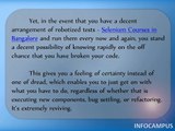 Get Best Training on Selenium Courses in Bangalore at INFOCAMPUS. Infocampus is an institute that provides selenium training in marathahalli. Candidates at Infocampus will get practical classes more. <br />Contact 9738001024 to attend free demo classes. Weekend and weekday batches are available for selenium classes. For much more information, visit http://infocampus.co.in/best-selenium-testing-training-center-in-bangalore.html.