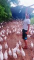Un homme mène son armée de poulets au combat