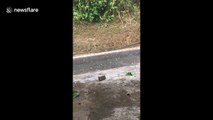 Dramatic footage has emerged from China of a hailstorm battering a city in southeastern China. <br /><br />The video, shot in Xinyu, Jiangxi Province on May 11, shows the massive hailstones smashing to the ground and creating a noise as they hit a lake. <br /><br />According to local reports, the storm only lasted for three minutes but some of the hailstones were described as being as big as eggs.