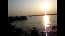 Boats in Hooghly River and seen far behind is Vidyasagar Setu