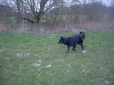 Femelle bleue, 9 semaines, chahutant avec Volga et Clark