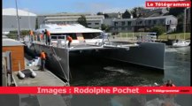 Concarneau (29). Mise à l'eau d'un catamaran exceptionnel
