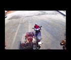 Il ne lachera pas sa moto... pret à tout pour sauver son chargement