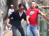 Man scared crying on a glass bridge in china