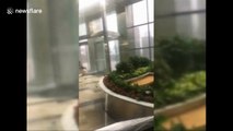 Footage has emerged from China of the moment a huge landslide blocked a road in Liuzhou. <br /><br />The video, filmed on May 23, shows large amounts of gravel and mud, tumbling down a slope during a rain storm. <br /><br />Fortunately, the road was empty when it happened so no one was injured. <br /><br />Authorities managed to clear the road after around four hours.