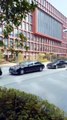 driver gets s shocks when two horese gallop towards his car