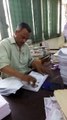 Dans un bureau au Pakistan, un homme tamponne super rapidement une pile de feuilles de papier. Avec une main, il met de l’encre sur le tampon, tamponne la feuille et de l’autre main, il tourne les pages.