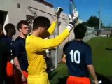 Entrée des joueurs au Stade Nouma-Daly. Présentation des équipes par M.Sepp Blatter et M.Temarii, président de l'Oceanian Football Confederation. <br />Les bleus de 98 rencontrent une sélection des meilleurs joeurs océaniens.