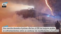 Bengalas, piedras y petardos contra la policía