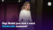 Gigi Hadid loses shoe while walking the runway