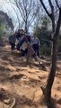 Un moine sur un sentier pentu