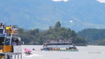 Dramatic video shows a tourist boat carrying around 170 passengers as it sinks on the Guatapé-El Peñol reservoir near the city of Medellin. Report by Browna. Like us on Facebook at http://www.facebook.com/itn and follow us on Twitter at http://twitter.com/itn