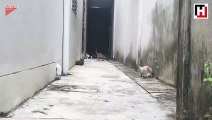 Sokakta sıkıştırılınca 'ninja' usulü kaçan kedi!