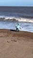 Little Boy Gets Caught up in Waves on Beach