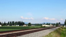 The Rocky Mountaineer backs out of the siding at South Bow, WA, having pulled in behind a coal train to allow other freight traffic to pass. The train then resumes its journey north to Canada.