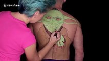 Talented make-up artist transforms into Yoda from Star Wars with body paint illusion
