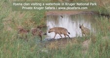 Hyena clan visiting a waterhole early morning in Kruger Park