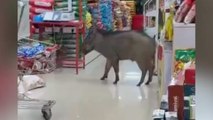 Chaotisches Video zeigt Wildschweinwandergänge im Supermarkt
