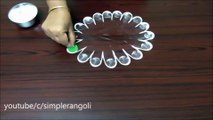 easy flower rangoli designs using tools __ simple creative kolam with nail polish bottle __ muggulu