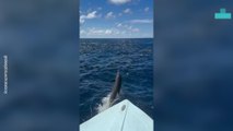 A video from Cornwall in the UK of some people having a close encounter with a dolphin.<br /><br />In the clip, which was filmed on July 16 off the coast near Pentewan, the dolphin appears to enjoy the proximity to the boat and even seems to give them a friendly wave with its tail.<br /><br />"While out on our rib on a Sunday morning, we spotted a dolphin! We idled towards him, and he came to investigate! He started playing with the boat, swimming under and around us, close enough to touch! We were bailing some water overboard, and he thought we were playing with him so started to splash us back, and roll over under the water!" The filmer wrote online.