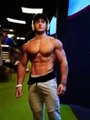 A bodybuilder boy showcases his physique.